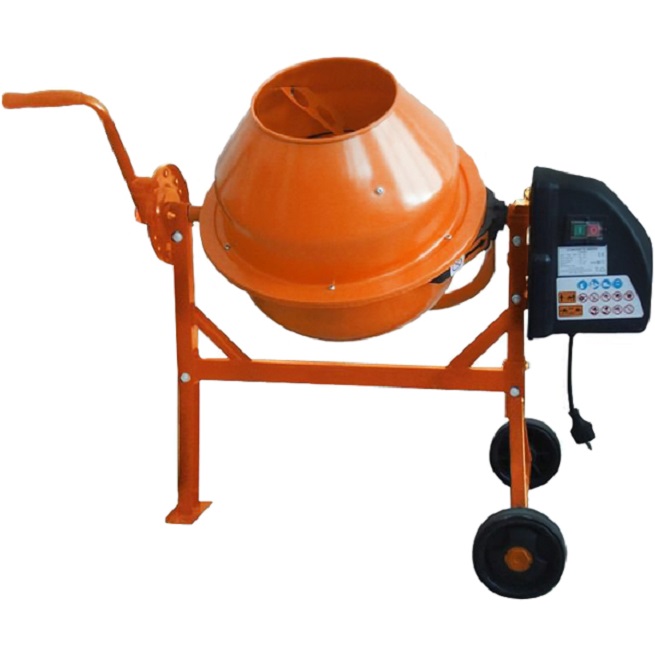Bétonnière électrique de production nationale. Diffère par la productivité élevée et la fiabilité de tous les éléments d'une conception. L'appareil est excellent pour la construction de maisons privées, ainsi que pour la préparation d'un mélange pour le coulage de sites et de chemins en béton.