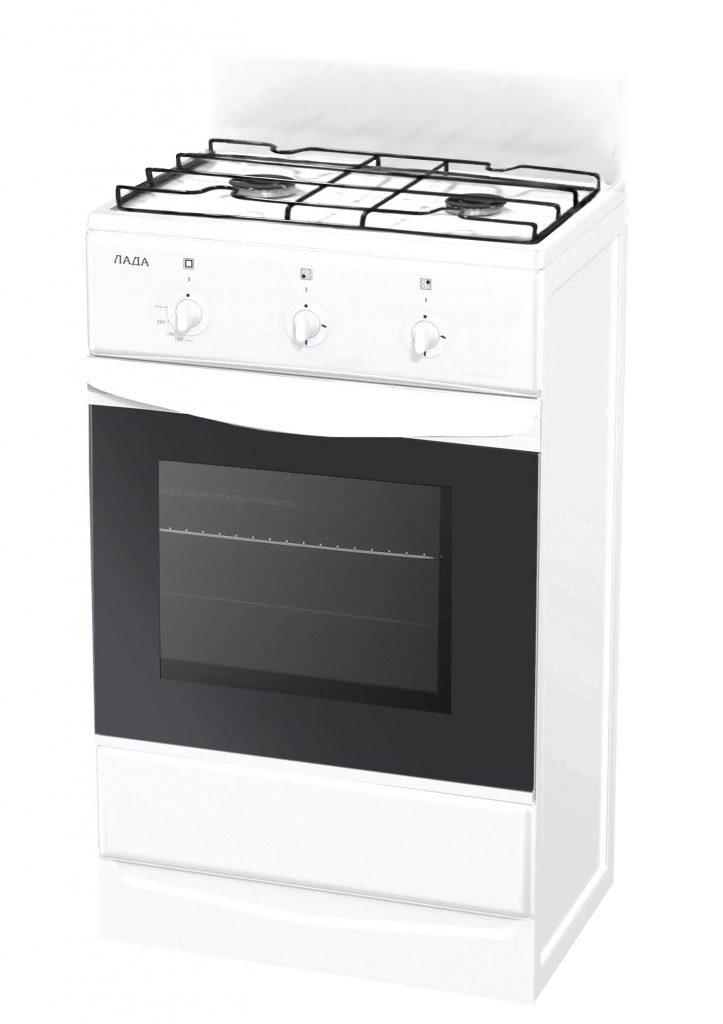 Le poêle a un système de contrôle du gaz. La porte de l'armoire est articulée, avec 2 verres de protection, une niche pour ranger la vaisselle est intégrée. La température maximale de cuisson est de 270 degrés avec une puissance de brûleur de 2000 watts.