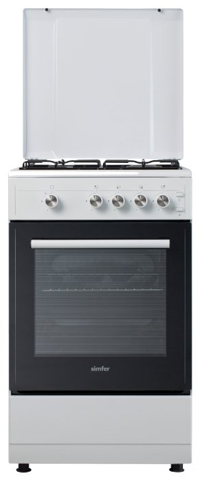 Un appareil avec une plaque de cuisson pour 4 brûleurs à gaz émaillés, un four d'une capacité de 45 litres ne prend pas plus de 60 cm de largeur (89 cm de hauteur, profondeur - 55 cm). La commande s'effectue par des interrupteurs rotatifs, un allumage électrique est prévu pour les brûleurs.