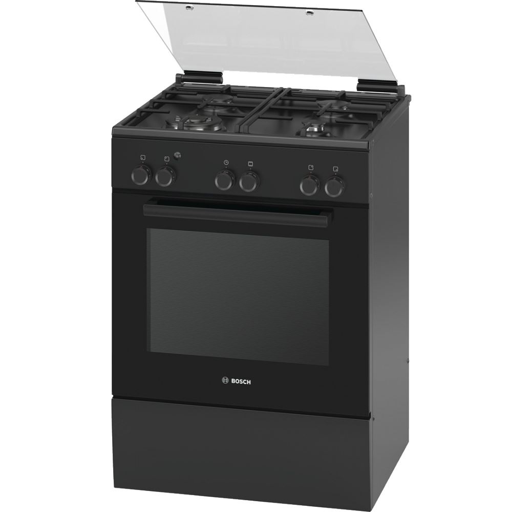 Le modèle Bosch HGL128I60R est livré avec une grille en fonte composite pour la vaisselle, un couvercle de plaque de cuisson en verre et 2 plaques de cuisson. Les brûleurs à l'aide de buses spéciales sont convertis en gaz liquéfié. Pour une utilisation confortable, il y a une section pour la vaisselle, les pieds sont réglables en hauteur.