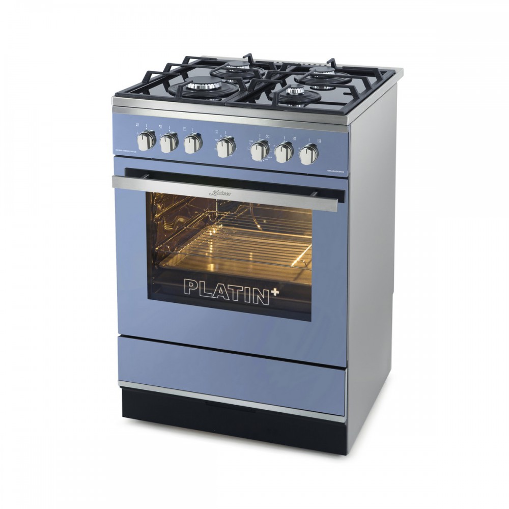 Modèle de segment Premium avec 4 brûleurs et un volume de four de 60 l, avec une surface de travail en verre trempé avec des inserts en acier inoxydable. Un poêle de dimensions 60x60x85 cm et d'un poids de 52 kg est équipé d'un allumage entièrement électrique et d'un contrôle du gaz, d'une minuterie sonore et de grilles en fonte.