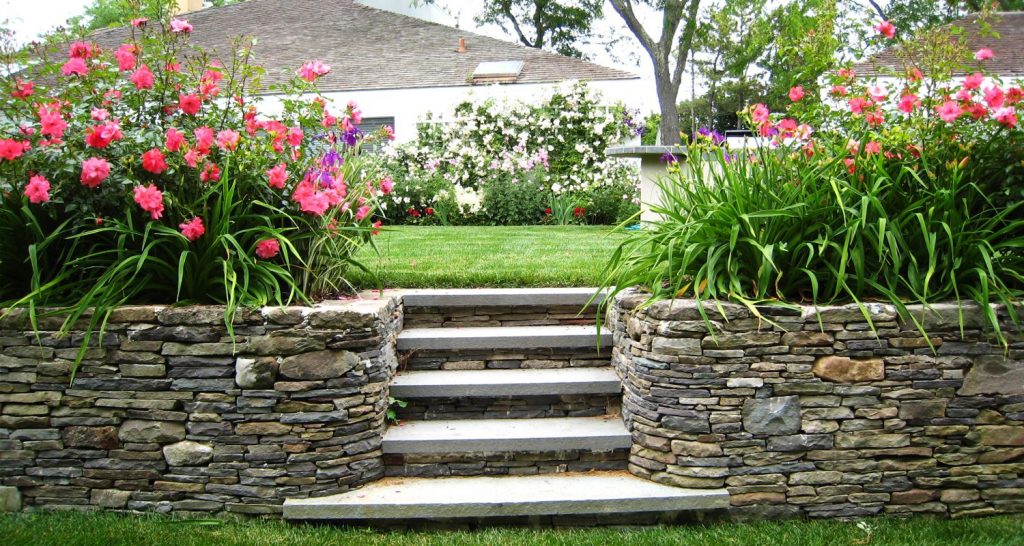 Jardins en terrasses à plusieurs niveaux - peu de gens peuvent se permettre un tel luxe, mais l'idée de telles parcelles peut être répétée sur un standard de 15 acres.