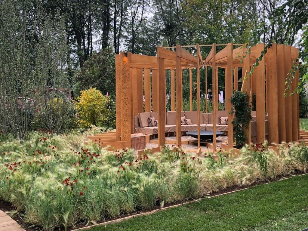 Chaises longues, hamacs, balançoires et fauteuils douillets à l'ombre du verger - très organique, élégant et confortable. Un auvent léger protégera du soleil et de la pluie légère, il est pratique de marcher sur un plancher en bois, surtout s'il y a de jeunes enfants à la maison. Cette zone est pour eux un terrain de jeu pour les jeux passifs.