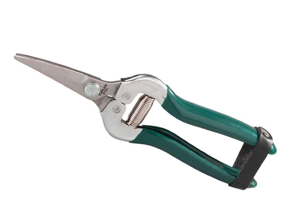 Avec une longueur de 218 mm, ce sont des cisailles de jardin compactes et de haute qualité. Le poids de l'appareil est faible - seulement 200 grammes, la conception a un loquet, ainsi qu'un revêtement protecteur. Les jardiniers apprécieront le revêtement antidérapant des poignées, ainsi que la présence d'une poignée..