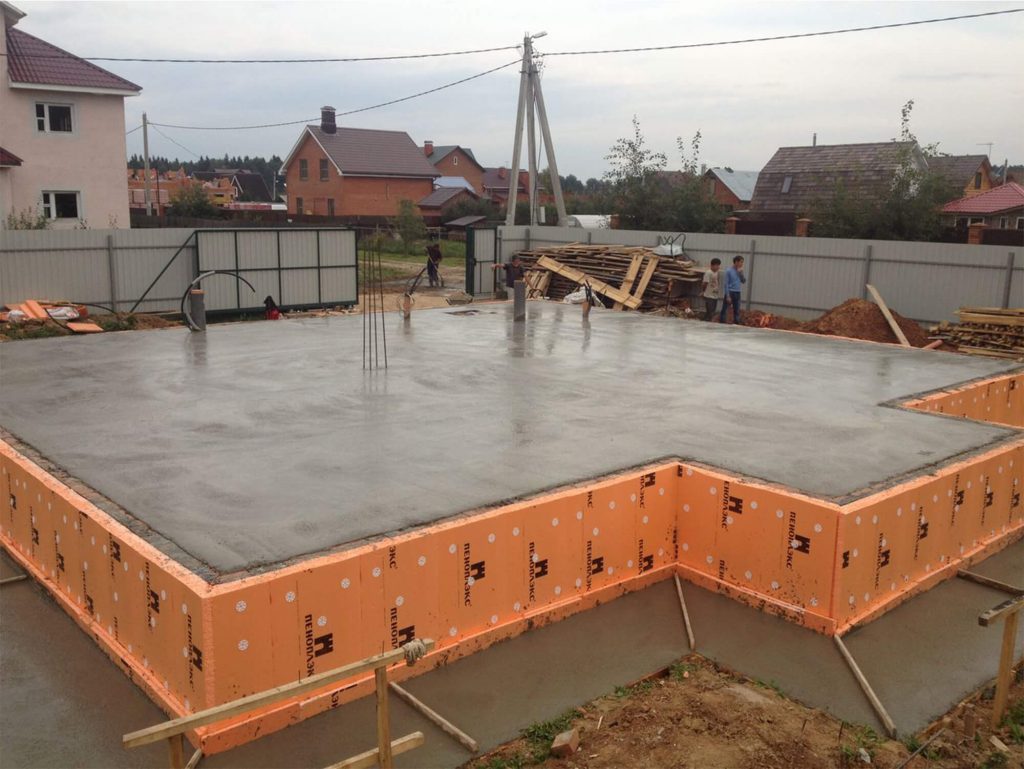 La base de la dalle représente visuellement une plate-forme de béton. Approfondit à une profondeur de 0,5 m ou plus de 1,8 m. Pour le dispositif d'une telle base, une forme inamovible est utilisée. Ici, des feuilles de polystyrène expansé de 50 ou 100 mm font office de plan, qui serviront alors de structure chauffante et d'étanchéité.