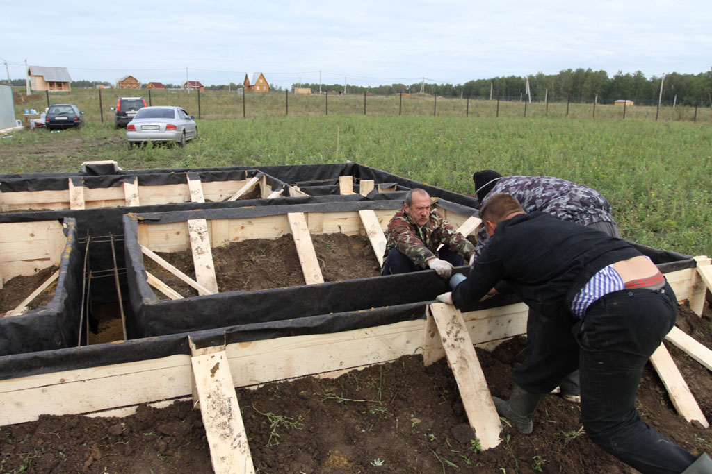 Préparation de remplissage. Après avoir installé les avions, vérifiez toute la structure pour l'absence de fissures. Pour assurer l'étanchéité de la structure, la surface intérieure est doublée d'un film pour éviter les fuites de béton.
