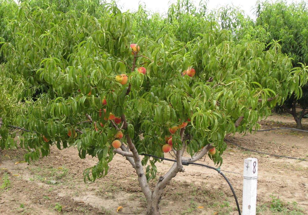 Dans ces régions, les pêches sont cultivées sous forme de tiges basses avec 2-3 rangées de branches de chaque côté du tronc. Une telle conception est beaucoup plus facile à protéger du gel et d'autres facteurs environnementaux (en particulier des vents violents).