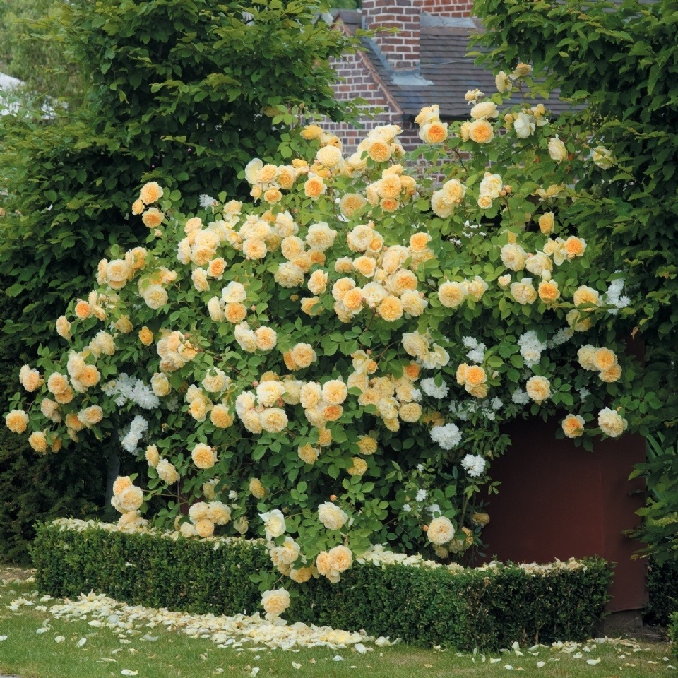 L'un des rosiers grimpants les plus titrés de couleur jaune-citron. Les fleurs en cours de floraison changent progressivement de couleur en ambre rose pâle. Diamètre de la fleur 12-15 cm.