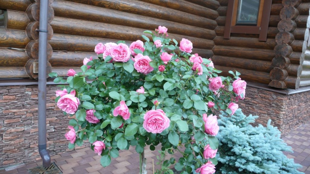 Grande variété, atteignant jusqu'à 1-1,2 m (parfois 1,5 m). l'arbuste a escalade branches et bourgeons, caractérisés par la pompe, les pétales doubles. Une bonne option pour décorer les éléments verticaux du paysage.