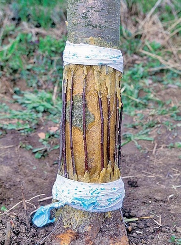 En fait, la greffe en pont consiste en plusieurs greffes d'écorce le long du périmètre de la tige de la plante. Dans ce cas, des pousses du même arbre sont utilisées. Leur préparation est effectuée immédiatement avant l'inoculation.