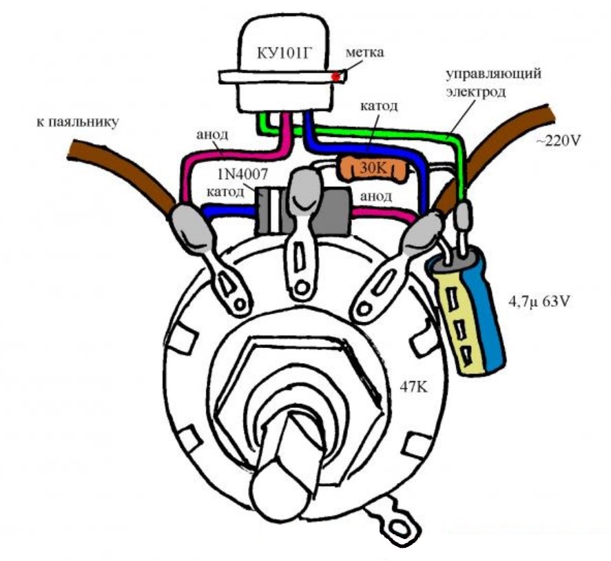 Un régulateur de température, ou plus précisément un régulateur de puissance, est nécessaire pour maintenir un certain régime de température sur la panne du fer à souder. Ceci est nécessaire pour réguler et sélectionner la température appropriée pour la soudure, - la température de fusion est différente pour différents alliages.