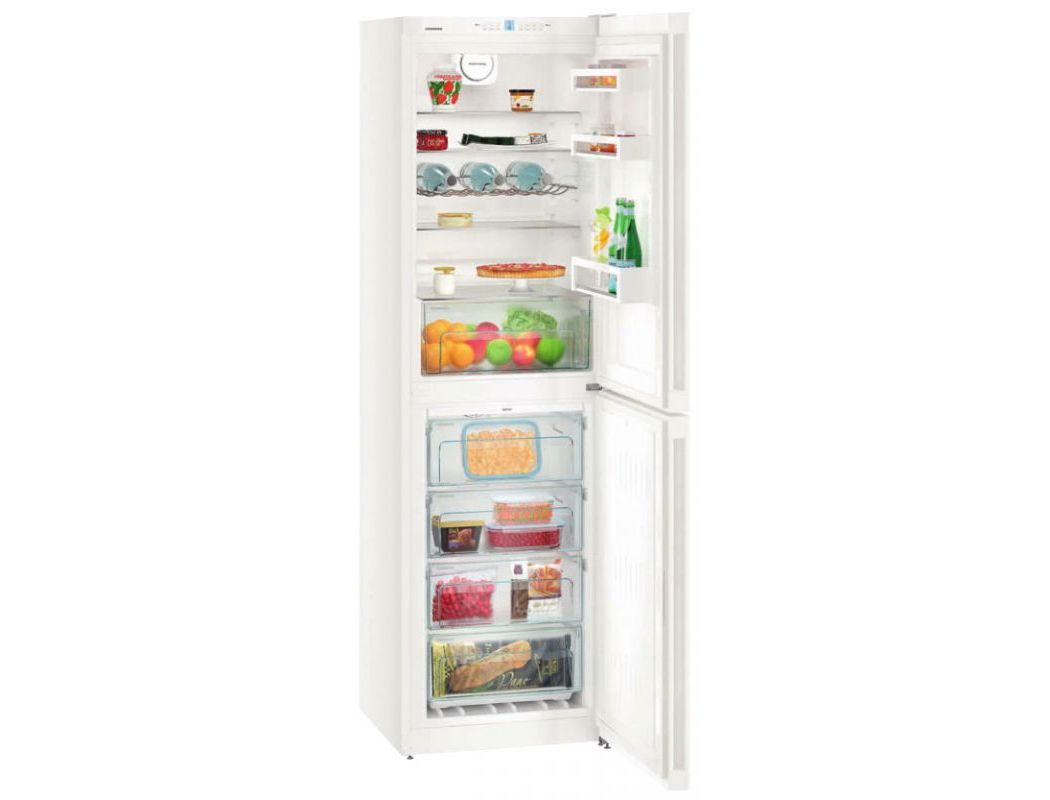 Le compartiment réfrigérateur dispose de 4 étagères en verre et d'un récipient pour les légumes et les fruits. Des plateaux supplémentaires sont installés sur la porte.
