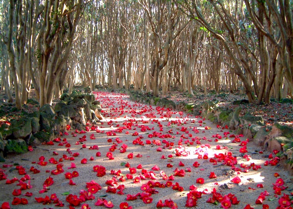 Le camélia doit son nom au naturaliste Joseph Kameliusqui a initié les Européens à cette culture. À la maison, le camélia peut atteindre des tailles gigantesques. Les arbres d'une hauteur de 5 à 6 m sont considérés comme la norme au Japon.En outre, dans la ville de Hagi, où se déroulent chaque année des festivals de camélias, il existe tout un bosquet de camélias japonais d'environ 15 m de haut.