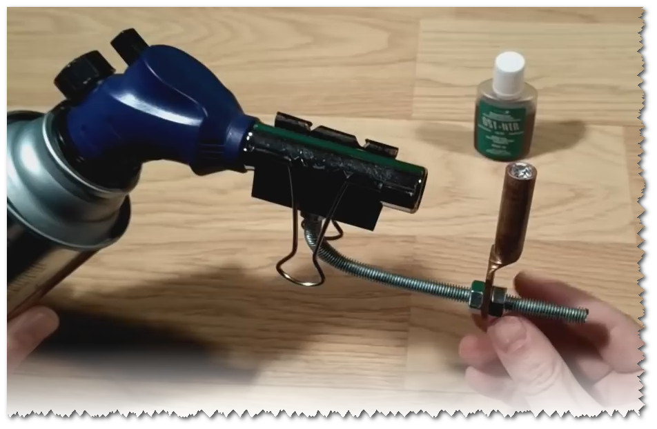 Nous allumons le brûleur à gaz. Nous attendons que la soudure fonde. Cela ne prendra pas plus d'une minute.