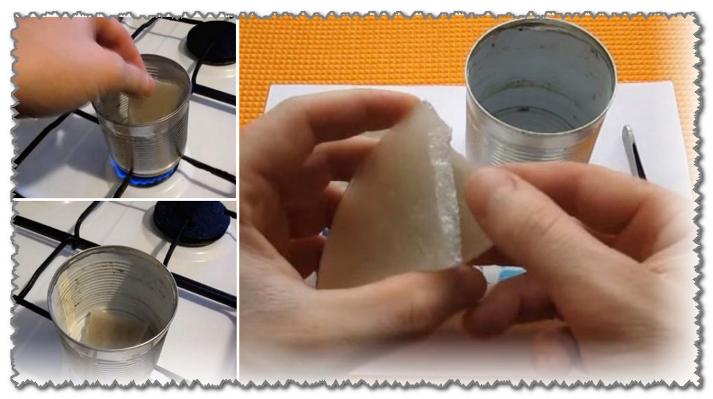 Nous mettons une boîte de conserve avec de la paraffine sur le feu. Nous avons utilisé une cuisinière à gaz. Vous devez fondre à feu doux.