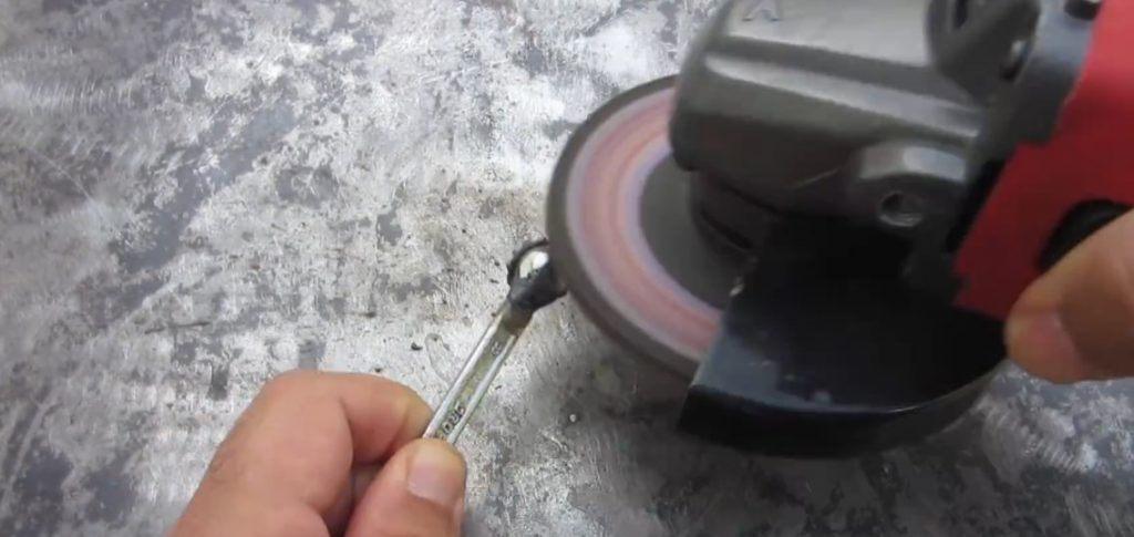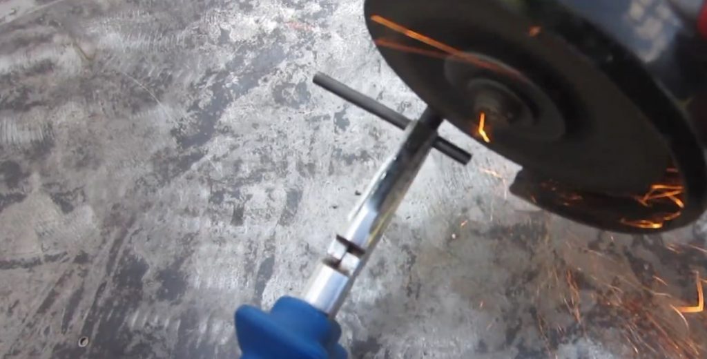 Selon le balisage, nous coupons le manche avec une meuleuse.