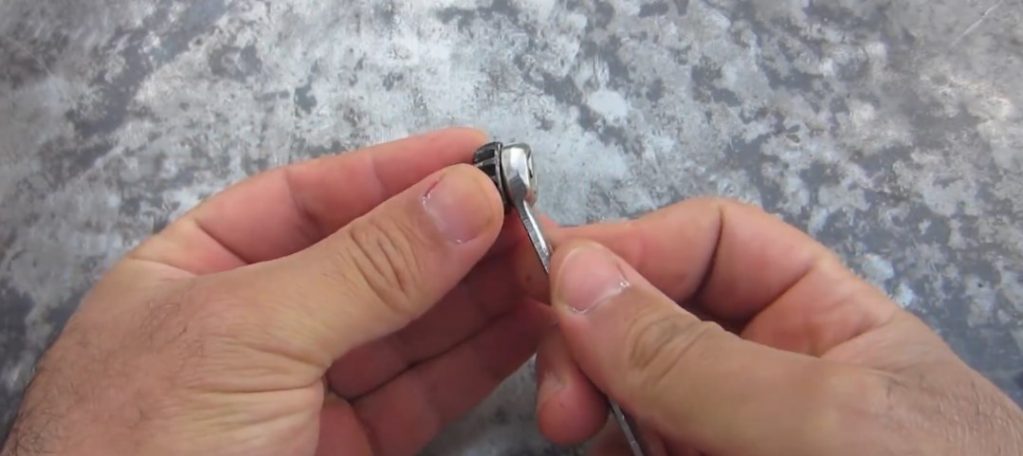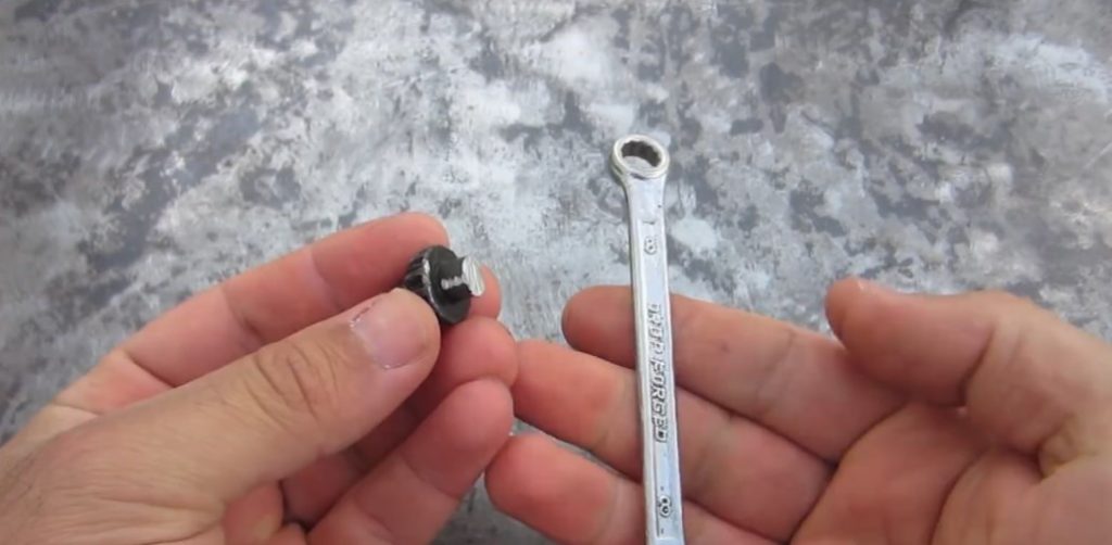 Nous prenons une clé de 8 mm et la posons sur la poignée sciée pour fixer la cartouche.