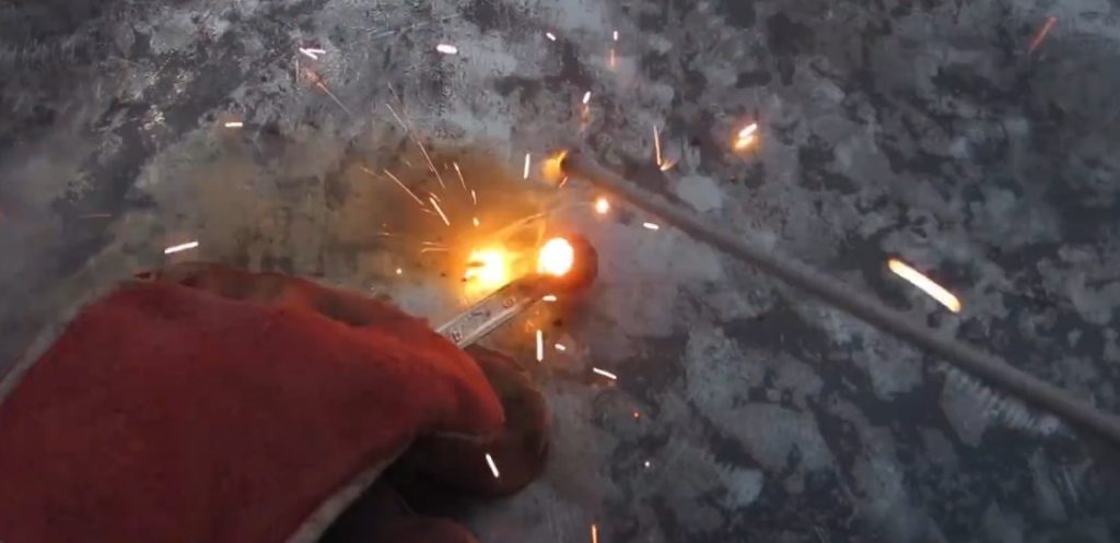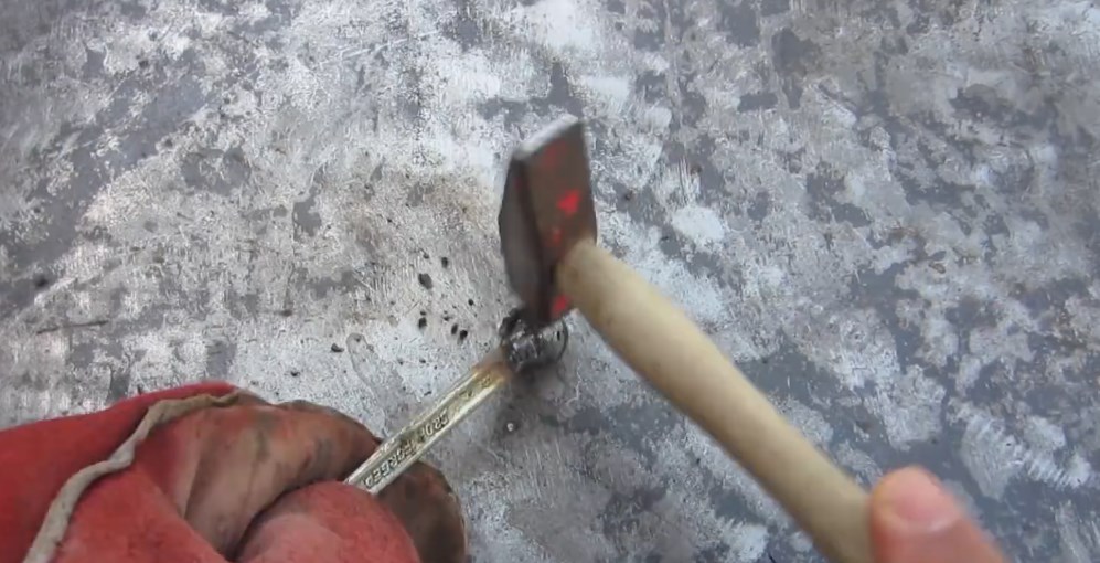Nous tapotons la partie soudée avec un marteau - enlevons le laitier.