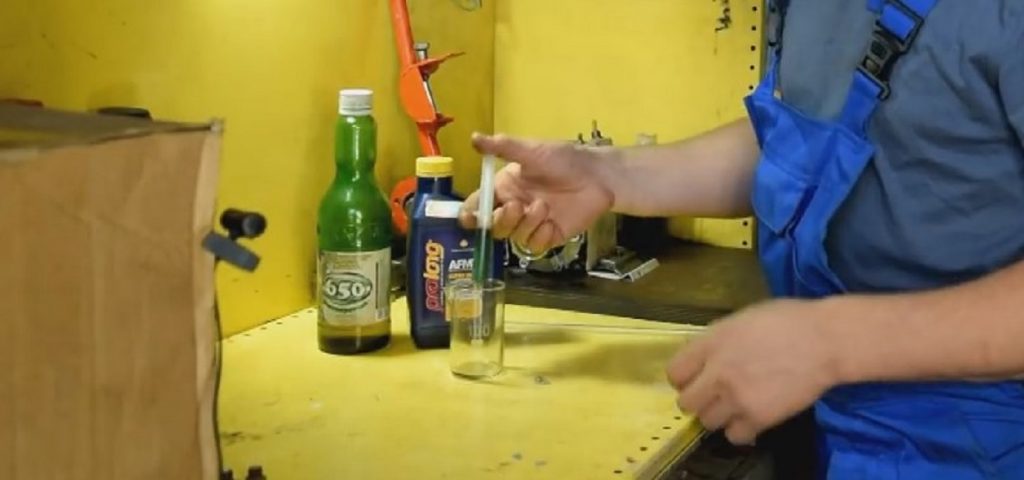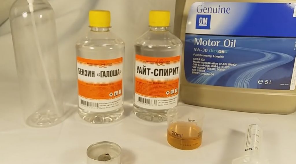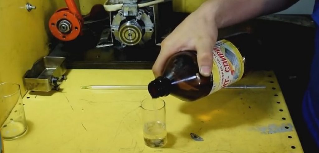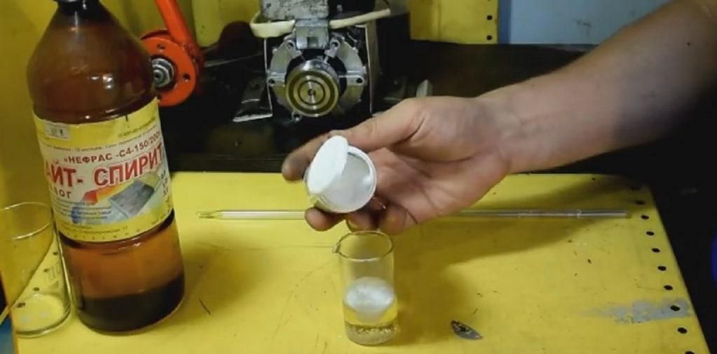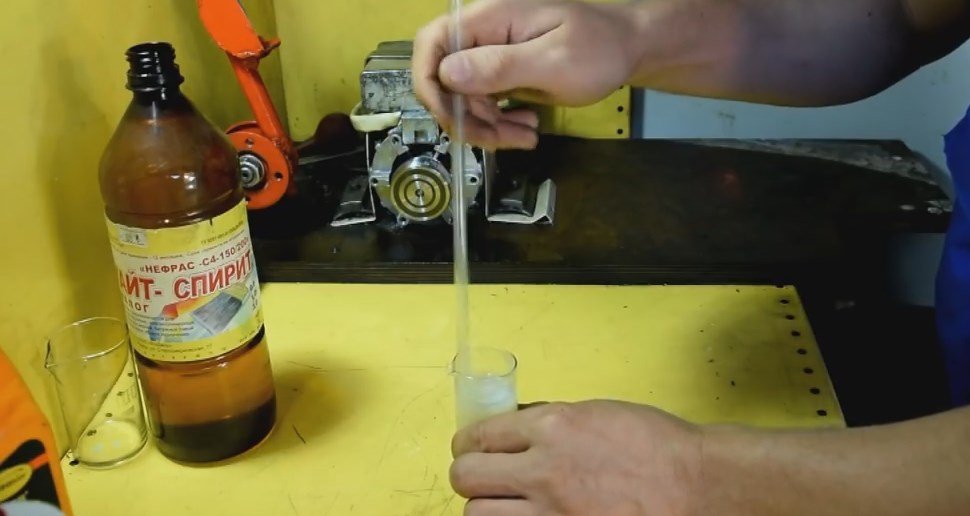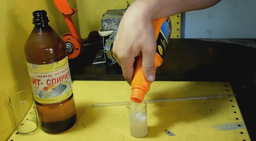 Nous ajoutons 0,05 partie, c'est-à-dire si le solvant est de 50 ml, alors le lubrifiant sec est de 2,5 ml (une demi-cuillère à café).
