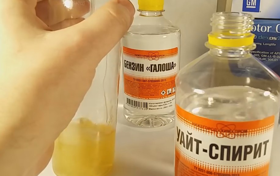 Ajouter 4 parts de white spirit. Si vous souhaitez fabriquer un agent hydrofuge, de la paraffine fondue est ajoutée à ce stade. Il est préférable de le mélanger au préalable avec un solvant dans un rapport de 1 à 50, c'est-à-dire pour 100 ml de white spirit 2 ml de paraffine.
