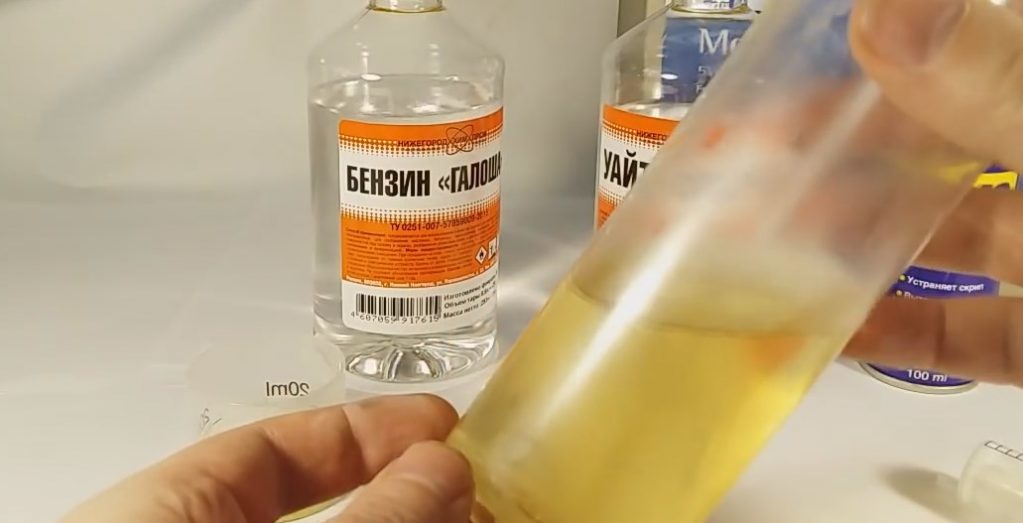 Versez 1 partie de white spirit dans le récipient, dans notre cas - 50 ml.
